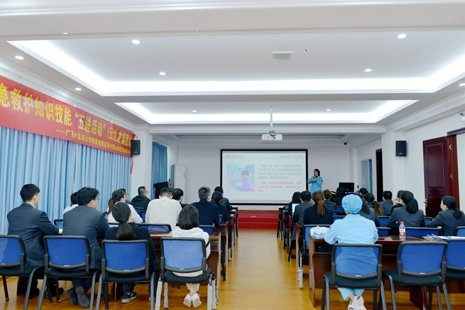 瑞康醫(yī)院副主任醫(yī)師黃清玉、龔斌為大家講授應(yīng)急救治的理論知識(shí)。他們通過(guò)多個(gè)生動(dòng)的案例突出救命的黃金時(shí)間重要性,強(qiáng)調(diào)突發(fā)事件現(xiàn)場(chǎng)第一目擊者(第一反應(yīng)人)為傷病員提供心肺復(fù)蘇操作的必要性,傳播“人人學(xué)急救、急救為人人”的理念。他們以通俗易懂的方式深入淺出地講解了應(yīng)急救護(hù)理論知識(shí)、高質(zhì)量心肺復(fù)蘇(CPR)、自動(dòng)體外心臟除顫器(AED)的使用、氣道異物梗阻的處理方法,告訴學(xué)員們更好地解決“何時(shí)救、誰(shuí)來(lái)救、怎么救”的問(wèn)題,培養(yǎng)學(xué)員既要有見(jiàn)義勇為的意識(shí),更要具有見(jiàn)義智為的知識(shí)和技能。