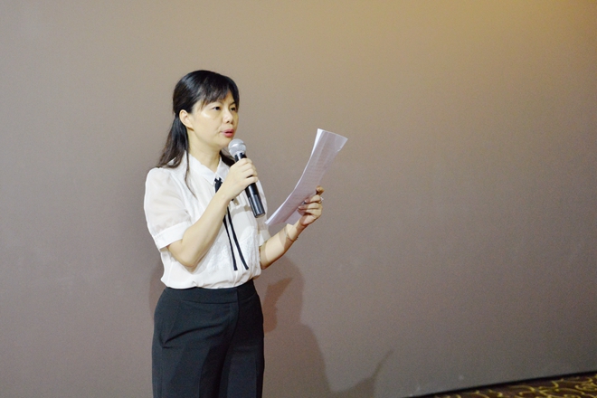 電影開始前,集團副總裁謝志紅、聶嘉薇分別在兩個影廳講話。